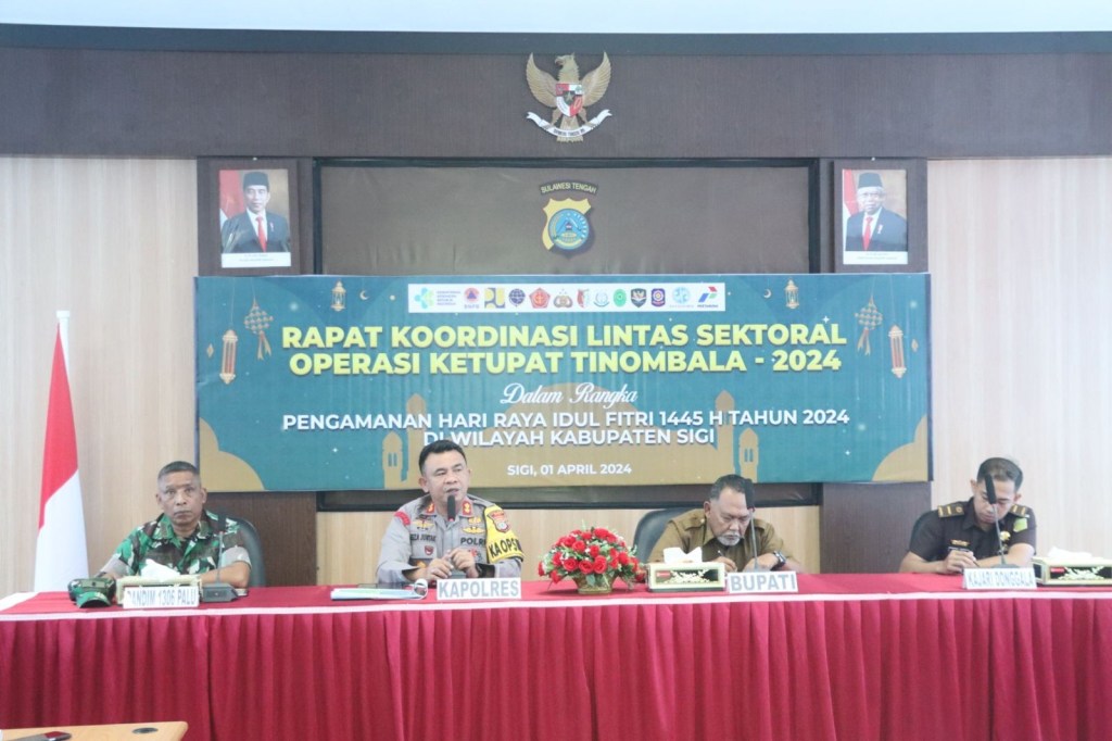 News Lintas Sulawesi/Sigi; Dalam rangka mempersiapkan pengamanan Hari Raya Idul Fitri 1445 H, Polres Sigi menggelar Rapat Koordinasi (Rakor) Lintas Sektoral yang melibatkan berbagai unsur TNI, Pemerintah Daerah, serta stakeholder terkait lainnya. Senin (01/04/2024).