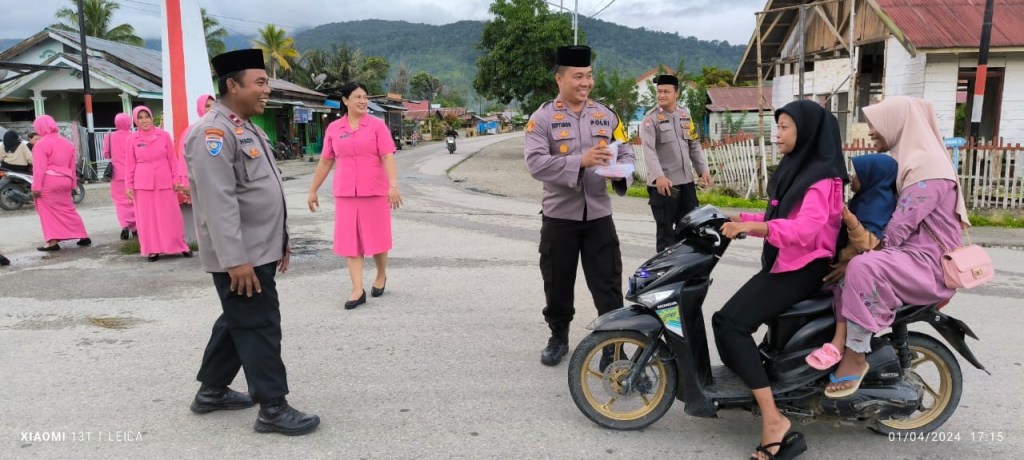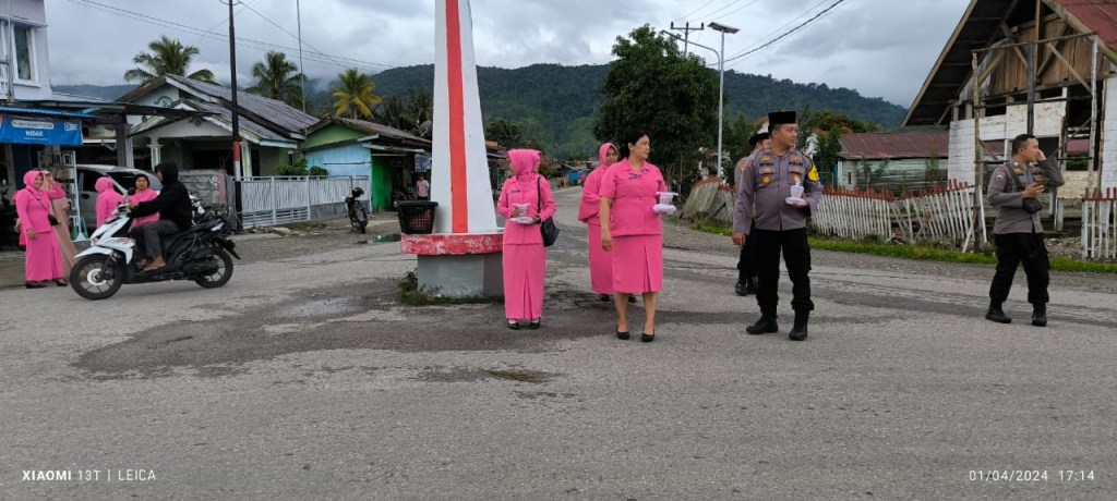 News Lintas Sulawesi/Lore Utara; Polsek Lore Utara beserta Bhayangkari menggelar aksi kebaikan dengan membagikan 100 paket takjil kepada pengguna jalan dan masyarakat yang melintas. Acara berlangsung di Desa Watuawu, Kecamatan Lore Utara pada Senin (02/04/2024) sekitar pukul 16.30 WIB.