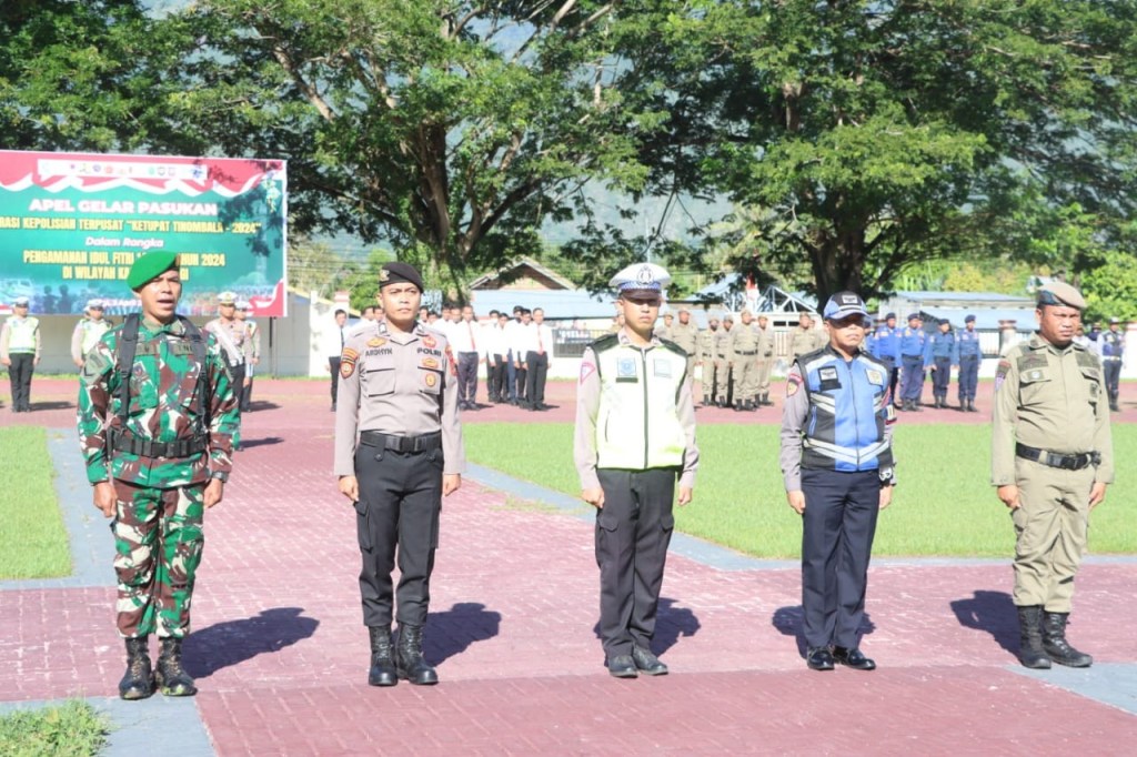 News Lintas Sulawesi/Sigi; Dalam rangka mengamankan hari raya Idul Fitri 1445 H dan perjalanan arus mudik serta balik selama momentum hari raya Idul Fitri, Polres Sigi bersama seluruh stakeholder terkait melaksanakan operasi kemanusiaan terpusat dengan sandi “Ketupat Tinombala 2024”, yang ditandai dengan pelaksanaan Apel Gelar Pasukan di halaman Mapolres Sigi. Rabu (3/4/24).