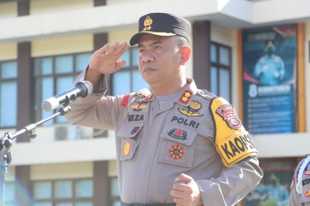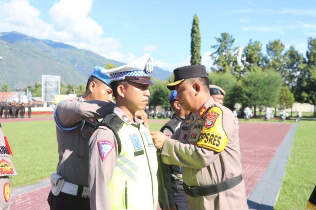 Kapolres Sigi, AKBP Reja A. Simanjuntak, S.H., S.I.K., M.H. selaku pimpinan apel, membacakan amanat dari Kapolri Jenderal Polisi Drs. Listyo Sigit Prabowo, M.Si, yang menyampaikan pentingnya sinergi antara TNI-Polri dengan stakeholder terkait dalam rangka pengamanan mudik dan perayaan hari raya Idul Fitri 1445 H.