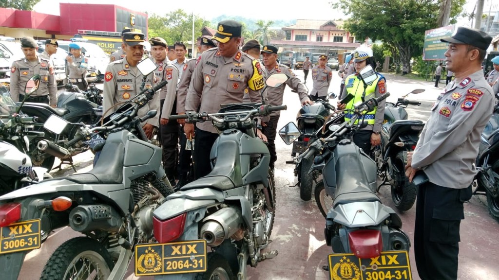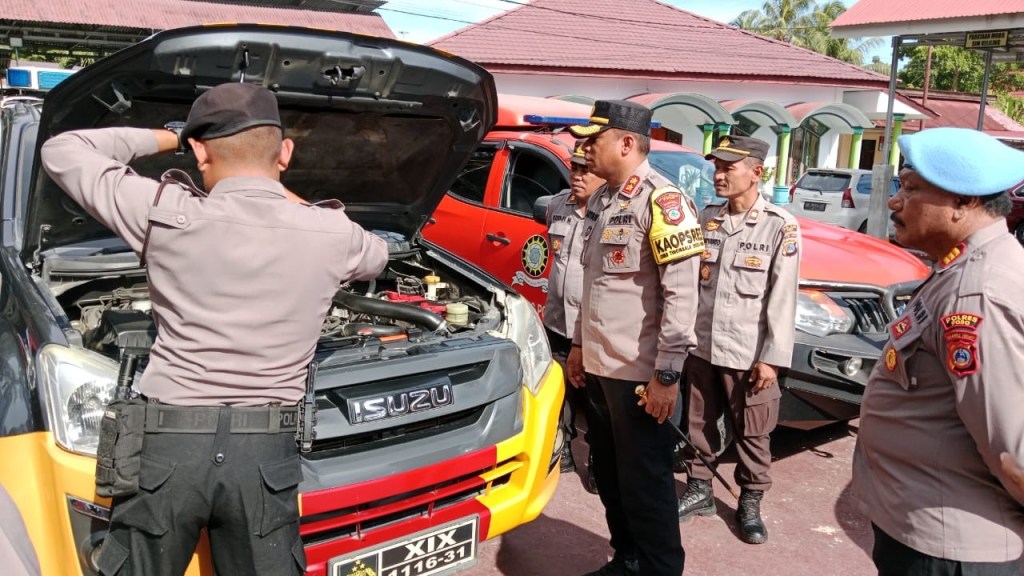 Dalam kegiatan tersebut, Kapolres melakukan pengecekan satu persatu kendaraan dinas guna memastikan kelayakan, termasuk kelengkapan bawaan kendaraan diantaranya, lampu rotator, helm, serta kelengkapan bawaan lain seperti bagasi motor guna memastikan bahwa kendaraan dinas Polri siap digunakan dalam tugas pengamanan.