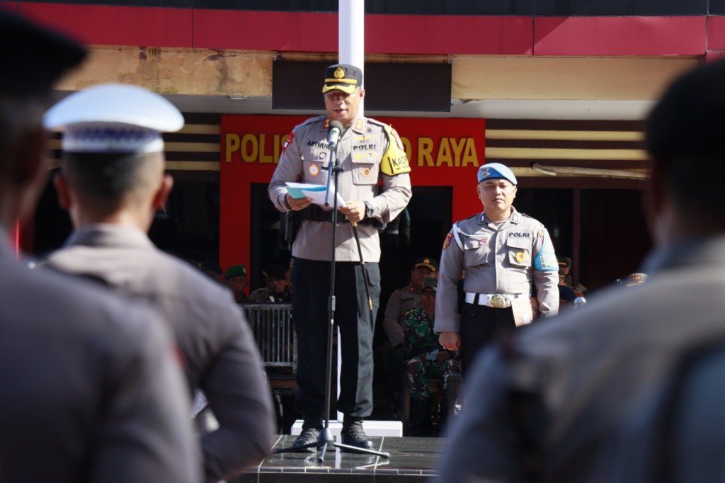 Kapolres Poso, AKBP Arthur Sameaputty, S.I.K selaku pimpinan apel, membacakan amanat dari Kapolri Jenderal Polisi Drs. Listyo Sigit Prabowo, M.Si, yang menyampaikan pentingnya sinergi antara TNI-Polri dengan stakeholder terkait dalam rangka pengamanan mudik dan perayaan hari raya Idul Fitri 1445 H.