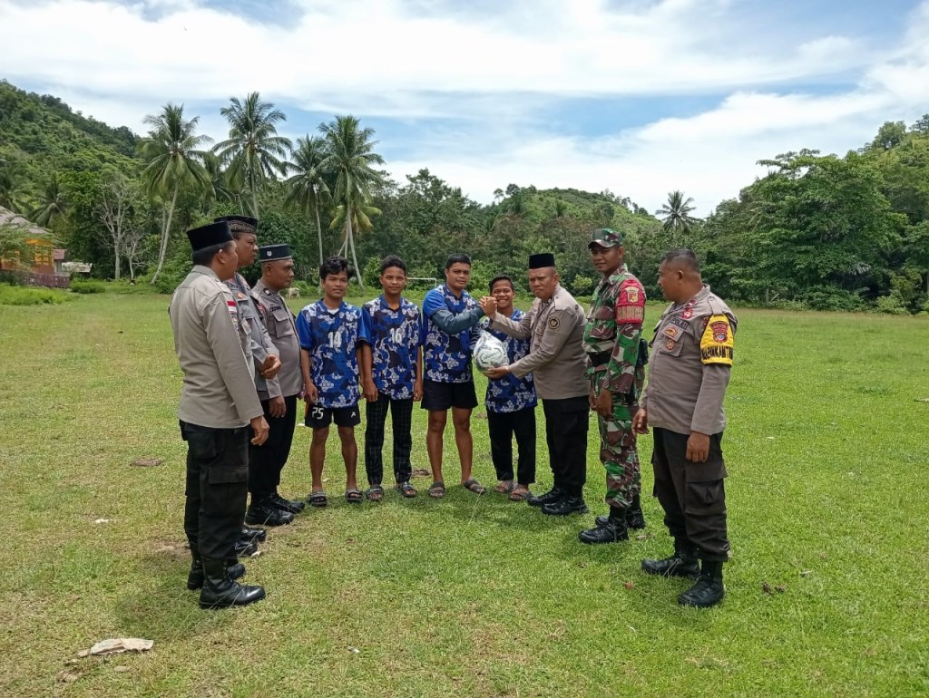 News Lintas Sulawesi/Parigi Moutong; Guna meningkatkan pembinaan mental dan spiritual generasi muda, Da’i Polri Polres Parigi Moutong (Parimo) yang tergambung dalam Satgas Preemtif Operasi Madago Raya memberikan bantuan sarana kontak berupa alat olahraga kepada pemuda Desa Matolele, Kecamatan Parigi Tengah, Kabupaten Parigi Moutong, pada Jumat (5/4/2024).