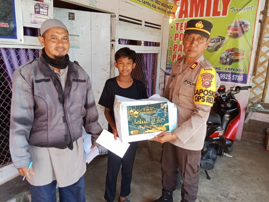 “Kami bagikan sebanyak 10 paket bansos serta santunan jelang Idul Fitri 1445 H kepada para anak yatim-piatu diwilayah Kecamatan Lembo, kami memberikan paket bansos dan santunan tersebut sebagai bentuk kepedulian Polri khususnya Polres Morowali Utara dalam berbagi kebahagiaan kepada para anak yatim piatu dibulan suci yang penuh berkah ini, agar mereka juga dapat merasakan kebahagian di hari Raya Lebaran, sama dengan anak-anak yang lainnya.” ungkap Kapolres.