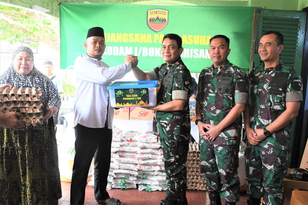 Sementara, Kapendam I/BB, Kolonel Inf Rico J Siagian, SSos, menambahkan bantuan yang diserahkan ke masing-masing panti asuhan, berupa beras 200 Kg, minyak 50 liter, gula 100 Kg, telur 25 papan, sirup 5 kotak, serta sarung 112 pcs.