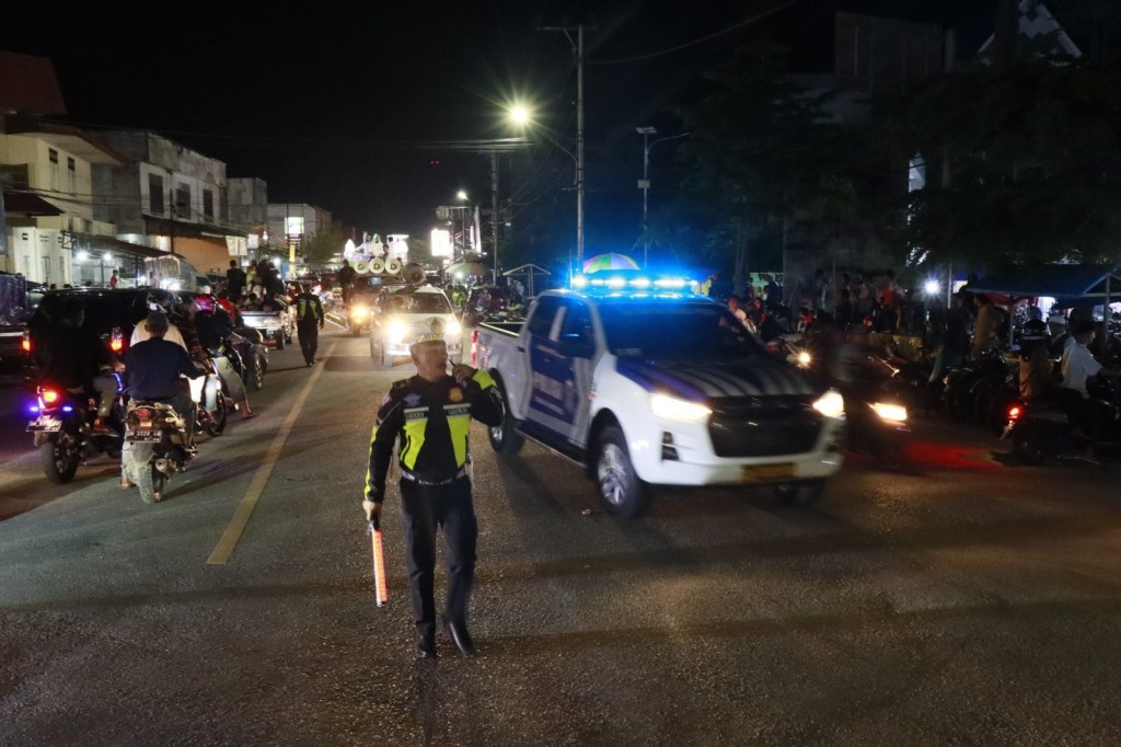 “Kita melakukan pengawalan rombongan pawai takbir, sehingga dapat berjalan sesuai yang kita inginkan”,ucap Kapolres. Tidak hanya pengamanan malam takbiran, pihaknya juga akan melaksanakan pengamanan pada saat hari raya pelaksanaan salat Idul Fitri.