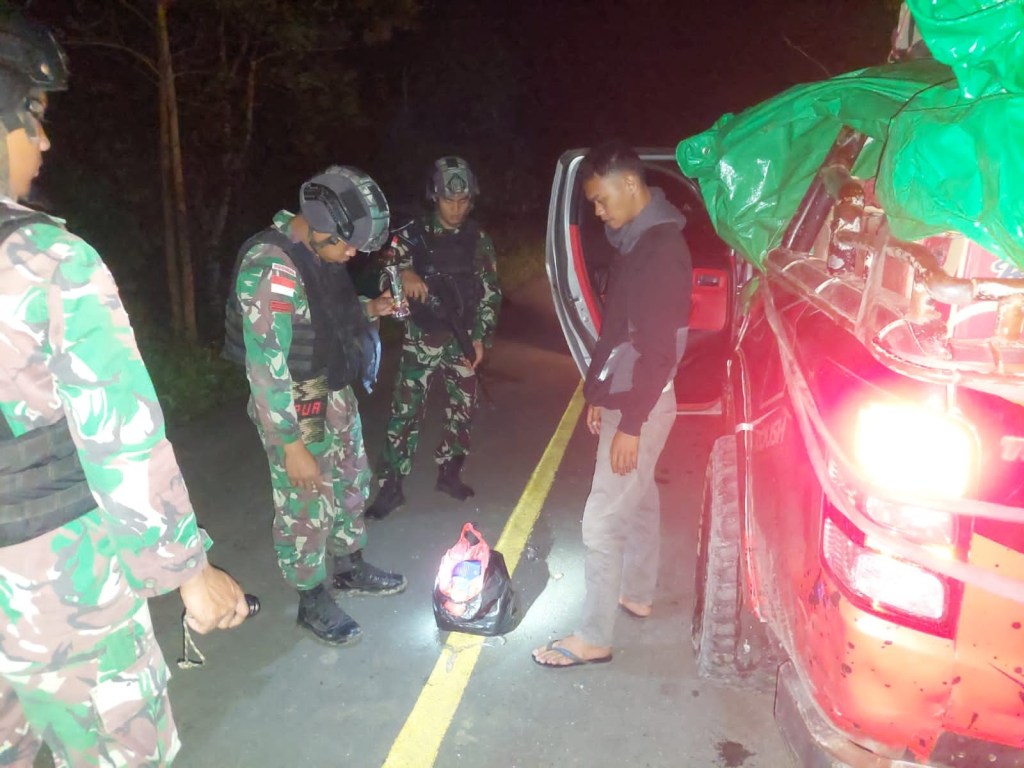 News Lintas Sulawesi/Kabupaten Keerom; Prajurit Satgas Pamtas RI-PNG Yonif 122/TS Pos Sawiyatami melaksanakan kegiatan pemeriksaan (Sweeping) di jalan lintas trans Papua tepat didepan Pos Sawiyatami, Distrik Mannem, Kabupaten Keerom, Jayapura.(13/04/2024).