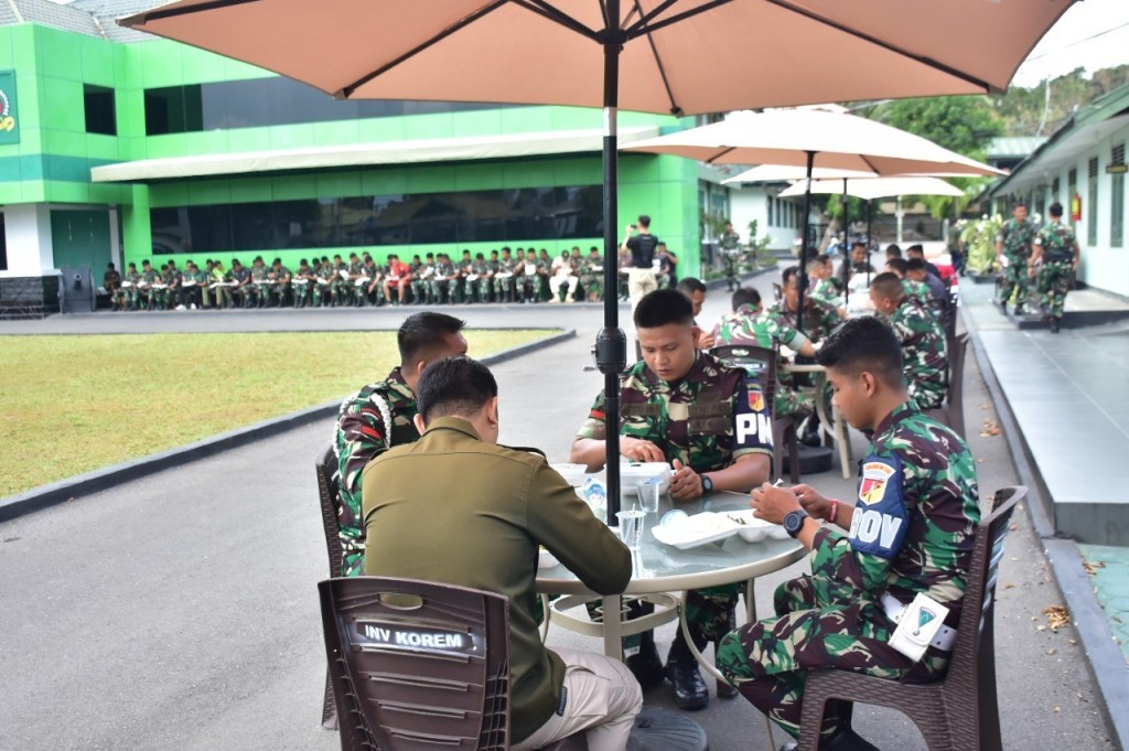 News Lintas Sulawesi/PALU; Suasana keakraban dan kebersamaan begitu terasa di lingkungan Korem 132/Tdl saat para Prajurit Petarung Korem 132/Tdl makan siang bersama sebagai bentuk Soliditas yang harmonis dalam menjalankan tugasnya.