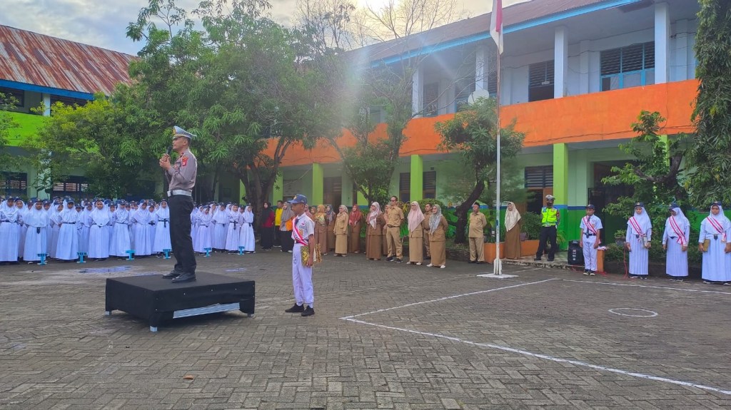 Seperti halnya pada Senin (29/04) pagi ini, Satlantas Polres Gowa melalui Kanit Gakkum Ipda Heri S berkesempatan kembali menjadi Inspektur Upacara di SMP Negeri 4 Sungguminasa.
