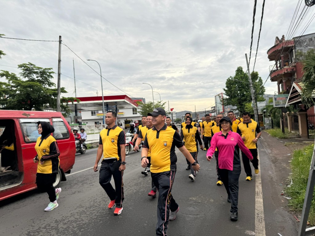 Kegiatan olahraga pagi dimulai dengan jalan santai keluar dari Kantor Polres Gowa. Suasana penuh keakraban dan semangat terlihat jelas ketika peserta melangkah bersama, saling berbagi cerita, dan menikmati suasana pagi yang segar.