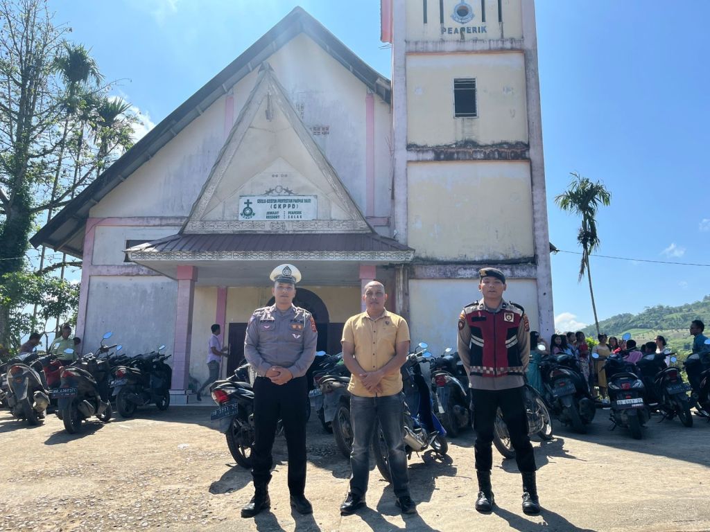 News Lintas Sulawesi/Polsek Pakpak Barat; Personil jajaran Polres Pakpak Bharat dibawah pimpinan AKBP Bambang C Utomo S.H, S.I.K.,M.H melaksanakan pengamanan ibadah kebaktian di seluruh gereja-gereja yang berada di wilayah hukum Polres Pakpak Bharat. Minggu (05/05/2024) sekira pukul 10.00 Wib.