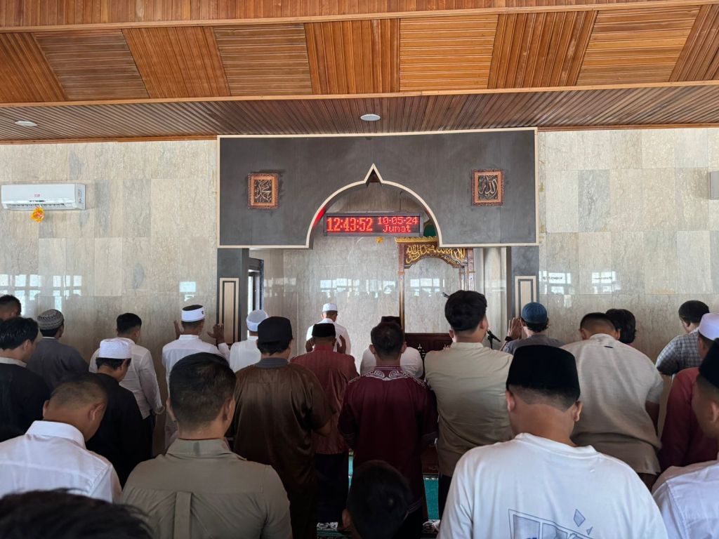 News Lintas Sulawesi/PALU; Sholat Jumat berjamaah dan Jumat Berkah makan bersama bertempat di Masjid Masjid Al-Aqsha Korem 132/Tdl Jl. Jenderal Sudirman No.25 (Jumat/10/05/2024).