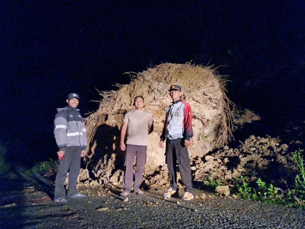 “Diduga karena curah hujan sangat meningkat, sehingga mengakibatkan pohon tumbang dan tanah longsor menutupi badan jalan. Kejadian tersebut tidak terdapat korban jiwa.” Ujarnya.