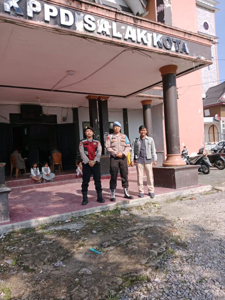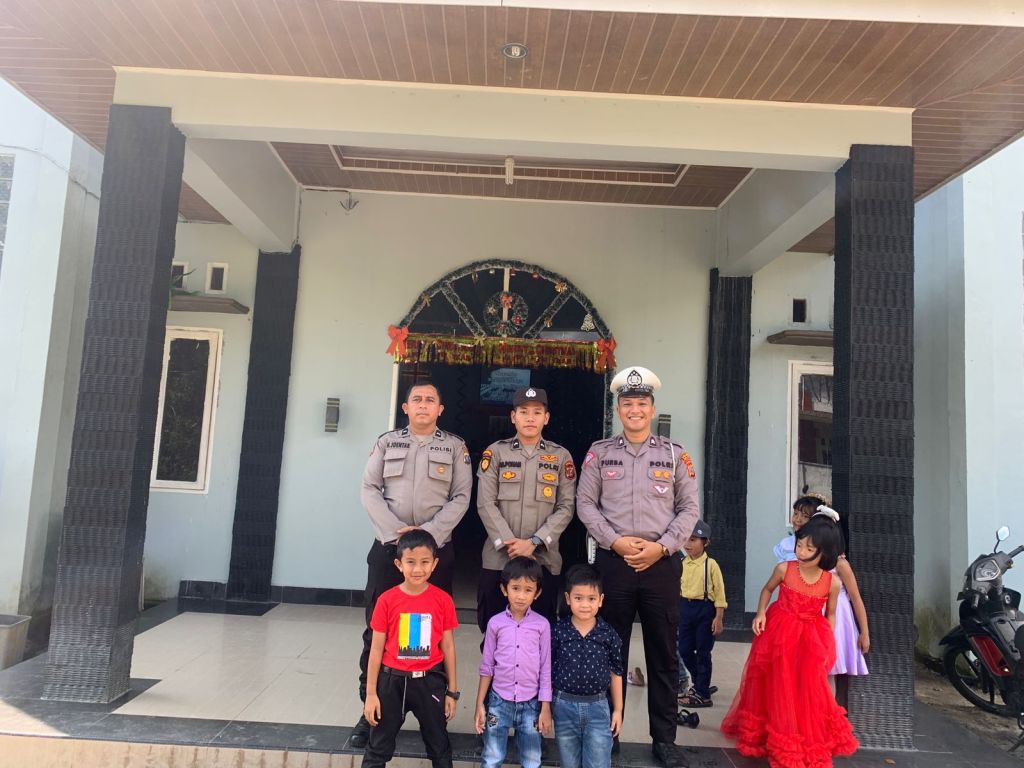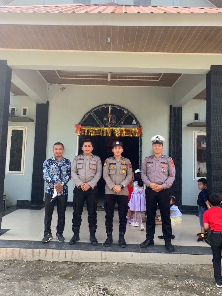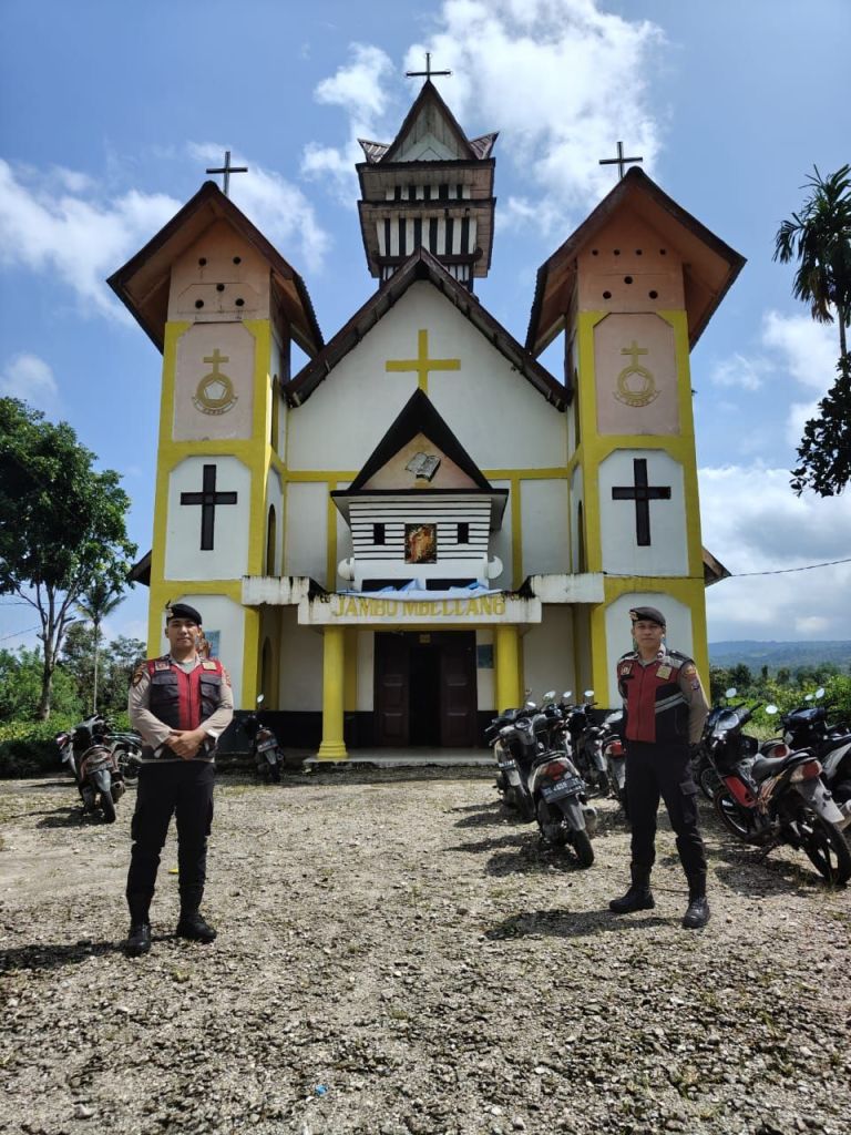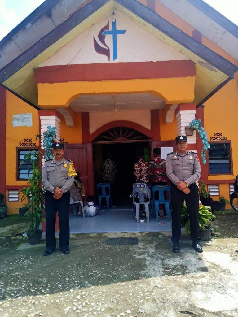 News Lintas Sulawesi/Polres Pakpak Barat; Polres Pakpak Bharat melakukan pengamanan lokasi gereja-gereja pada saat pelaksanaan ibadah kebaktian perayaan Kenaikan Isa Almasih oleh umat Kristiani, hal tersebut tampak di gereja-gereja yang ada di wilkum jajaran Polres Pakpak Bharat, pada Kamis (09/05/2024).